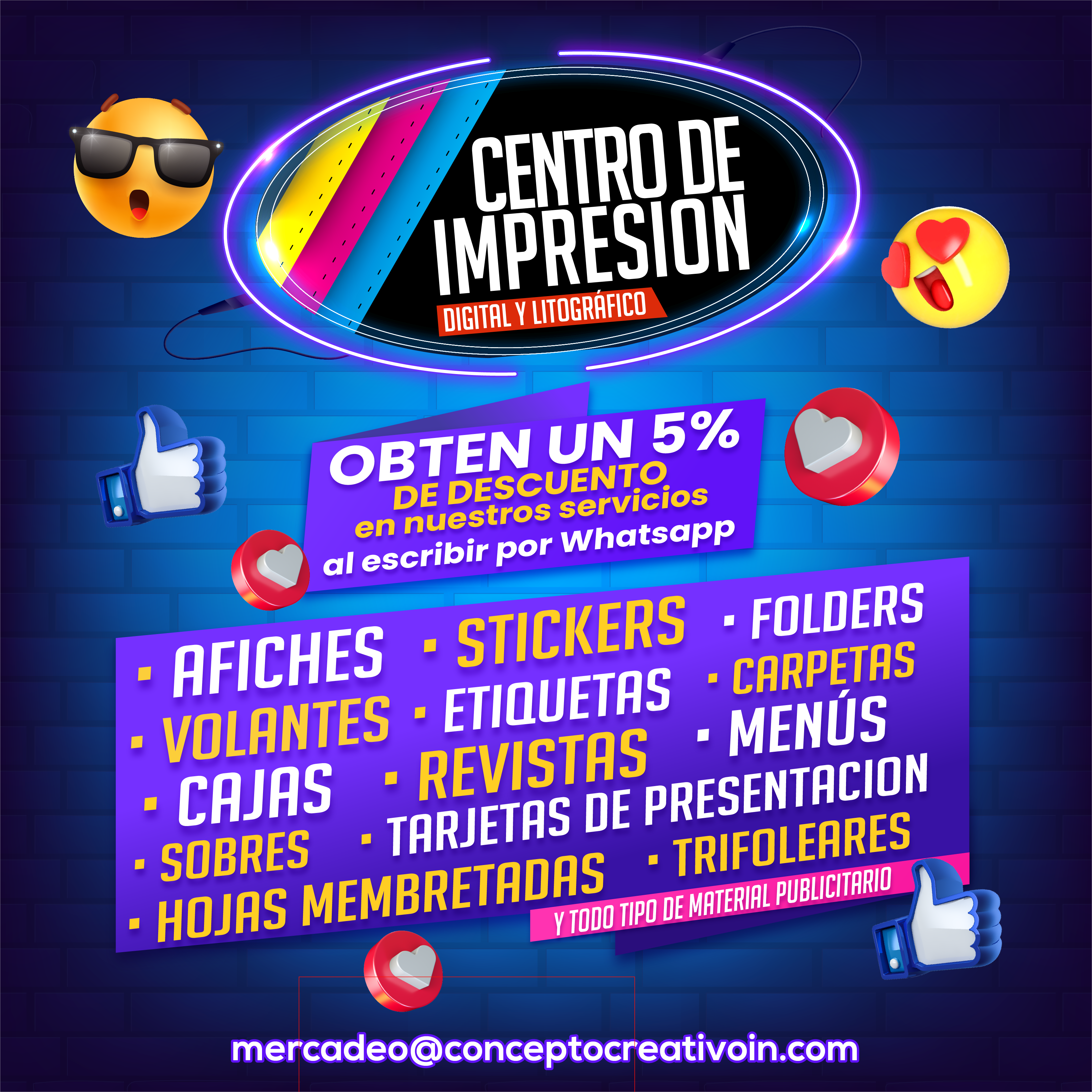 • Afiches •Volantes • Tarjetas • Trifoleares • Carpetas • Libros •Revistas